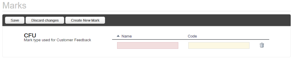 Here, you enter a Name of the Mark Type. Optionally, enter a Description. Also, decide if Codes should be enabled for the Mark Type and if it should be Visible in the configuration, by checking the applicable check boxes.