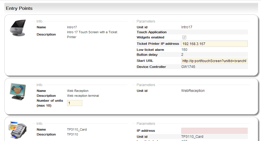 At the bottom of the page, you can find the available Equipment for that Branch. Here you need to enter information, such as IP address for your TP Printer.