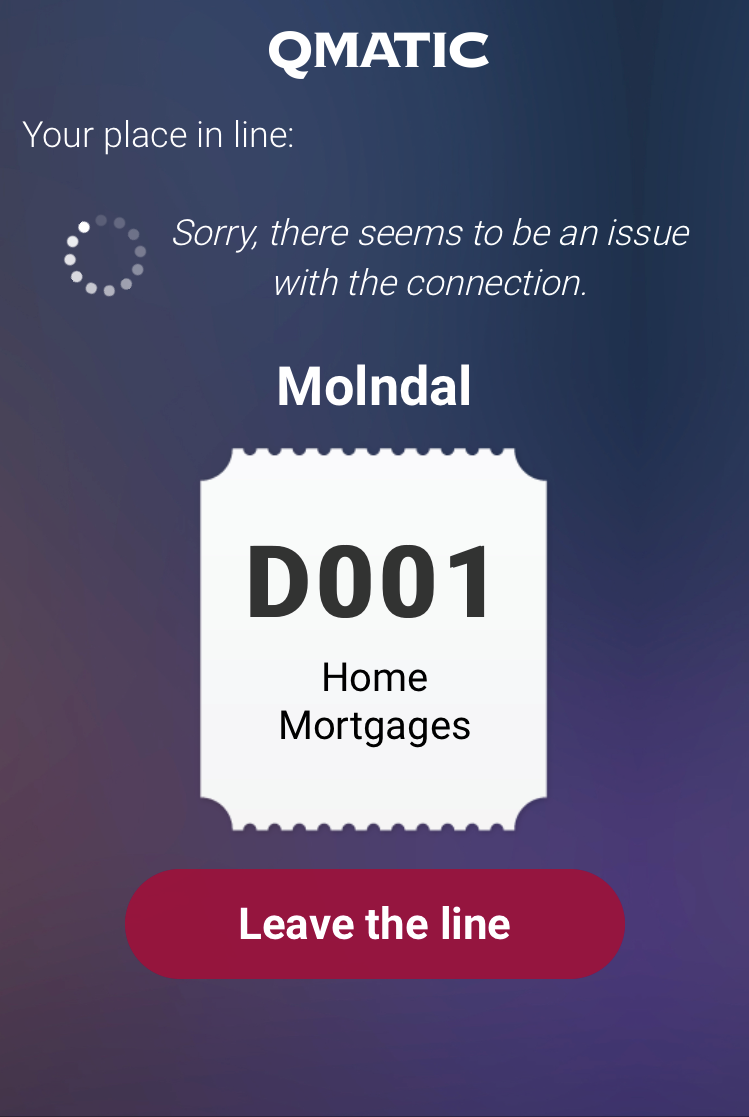 • The end-customer goes to the physical Branch and sees information, something like “Go to this url to take a ticket online!” The end-customer then enters the url in the browser of his/her phone, takes a ticket and can then follow the progress of the line on the phone.