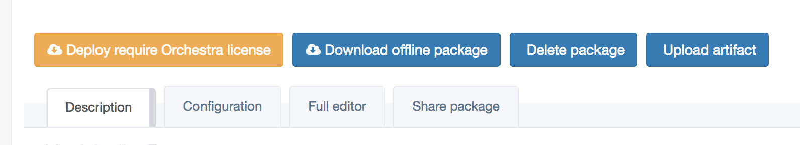 If you own/created the package or component, you will also see two more functional buttons and tabs. You can for example delete an existing package or add more files (UTTs, widgets, war-files etc.) to it. You can also edit the package directly in the Full editor tab, or share the package within the organization under the Share package tab.