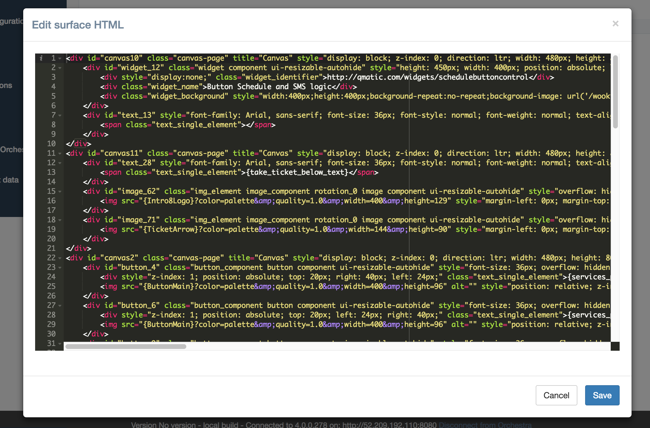This will open the surface html editor with the surface html pretty-printed for easier editing.