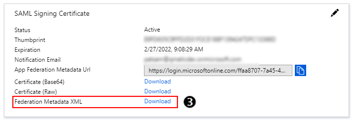 Once the Entity ID and the URL are configured, download the identity provider metadata file from the identity provider. For Azure AD, that can be downloaded from the link here.